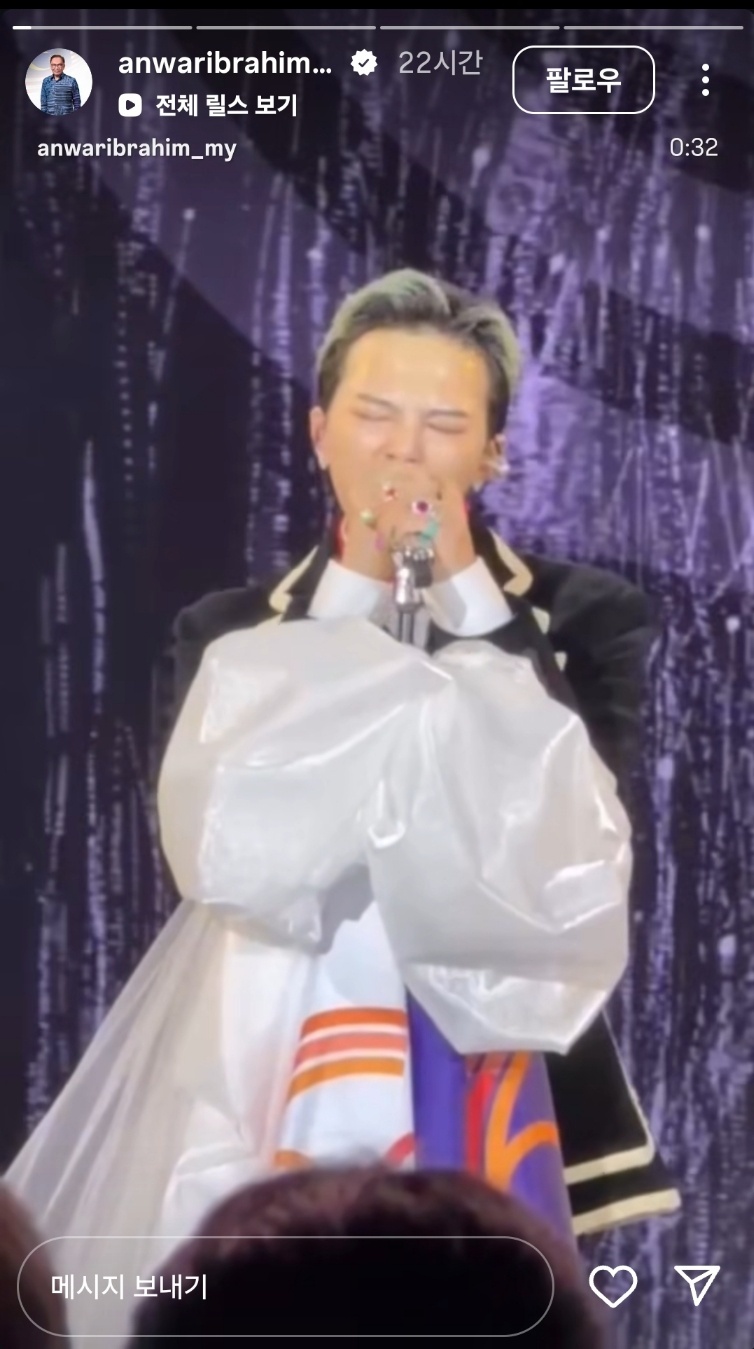 안와르 총리는 게시물에서 “말레이시아의 많은 K팝 팬들이 오늘 밤 지드래곤의 공연을 공유해 달라고 요청했다. 팬들을 실망시키지 않기 위해 그의 공연 일부를 공유한다”고 썼다. ‘#KpopForever’라는 해시태그도 붙였다.
