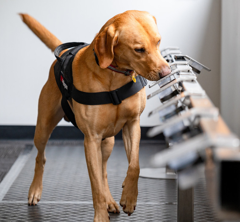 뛰어난 후각을 바탕으로 난소암을 조기에 발견하는 비침습적 테스트에 임하고 있는 개. K9MD 갈무리