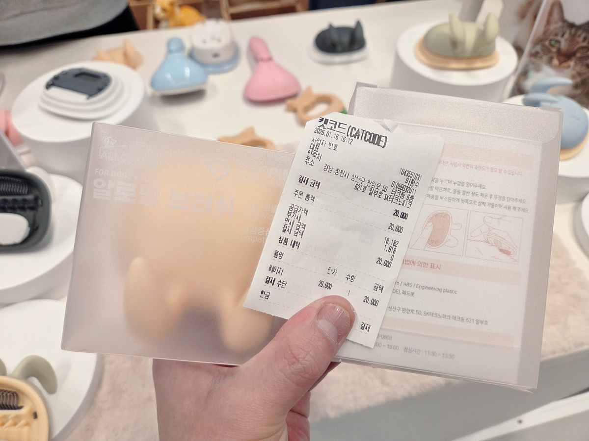 캣코드가 운영하는 브랜드 알루밍의 ‘그루밍 브러시(빗)’가 그랬다. 집사가 손에 끼워서 반려묘의 털을 정리하고 그루밍(고양이가 털의 청결과 정리를 위해 몸을 핥는 행위) 효과를 내는 제품이었다. 기본적인 빗 형태의 제품에 고양이의 까끌까끌한 혀의 표면을 떠올리게 하는 돌기가 있었다.
