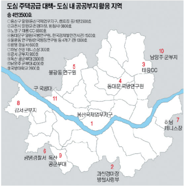 서울 도심 등 수도권 핵심 요지에 주택 집중 공급.