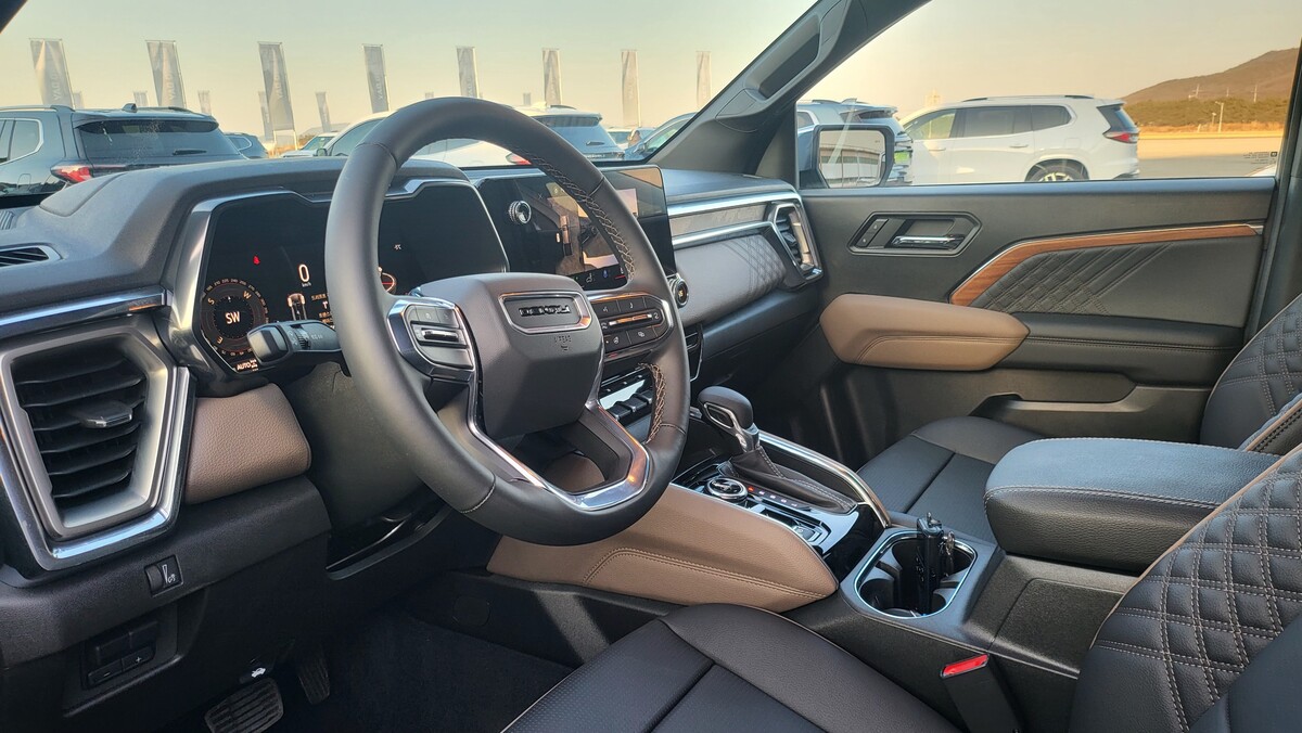 캐니언은 완전히 다른 영역을 담당한다. 험로 주행과 언덕 오르내리기, 즉 힐 클라임과 힐 디센트 등정통 오프라인 환경에서 캐니언은 정통 픽업트럭의 기본기를 드러낸다. 프레임 바디 특유의 단단함, 저속에서 힘을 몰아주는 토크 특성, 전자식 험로 보조장치가 결합되며 정체성을 분명히 했다. 동시에 드날리 트림의 고급스러운 실내는 픽업트럭이 더 이상 거친 작업용 도구에 머물지 않는다는 점을 보여준다.