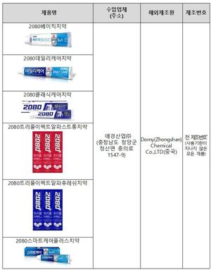 식약처, 금지성분 검출 애경 ‘2080 치약’ 수입품 전량 검사