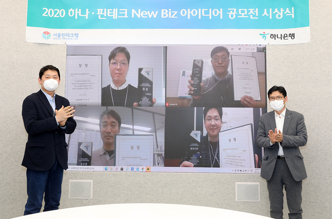[세계비즈=안재성 기자]하나은행은 지난 5일 을지로 본점에서 ‘하나·핀테크 New Biz 아이디어 공모전’ 온라인 시상식을 개최했다고 6일 밝혔다.