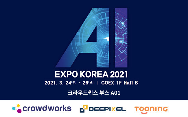 크라우드웍스는 24∼26일 사흘간 서울 코엑스 B홀에서 개최되는 이번 전시회에서 ‘딥픽셀’과 ‘툰스퀘어' 등 인공지능 기반 솔루션을 제공하는 주요 고객사와 함께 공동 부스를 마련하고 크라우드소싱 기반 고품질 데이터 라벨링 서비스를 소개할 방침이다.