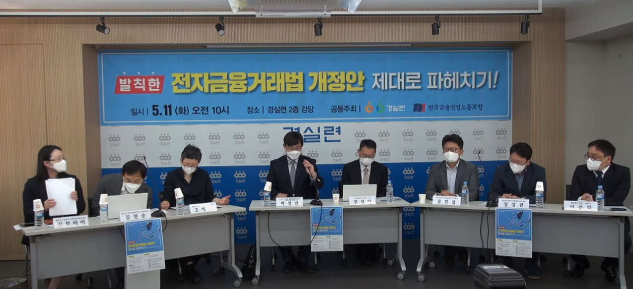 이날 토론회에선 전금법 개정안이 금융안정성을 해칠 수 있는 요소를 담고 있다는 우려도 나왔다. 조혜경 정치경제연구소 대안 선임연구위원은 “핀테크 업체들이 금융서비스를 영위하면 은행 등의 수행하는 기존 풀뱅킹의 업무를 포함하게 되는 것이므로 그에 포함되는 규제를 적용하는 게 마땅하다”며 “풀뱅킹의 특정 업무만 수행한다는 이유로 ‘금융회사가 아니다’라고 판단하는 건 해괴한 접근방식”이라고 꼬집었다. 조 연구위원은 “금융기관이 아니라는 이유로 특혜적 규제완화를 제공해 사업 환경을 풀어주는 건 금융의 핵심인 위험관리를 간과한 것”이라고 덧붙였다.