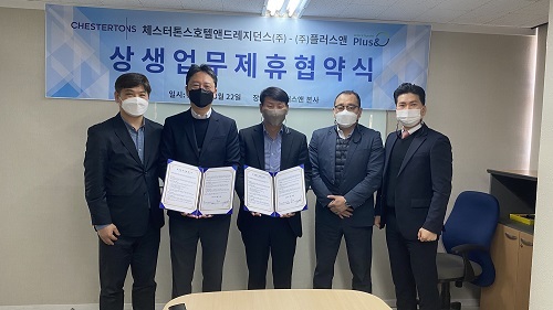 협약실무를 담당한 플러스앤 최낙현 상무와 체스터톤스코리아 손민복 운영본부장은 “최근 수익형 숙박시설의 공급이 늘어나다 보니 이에 대한 검증이 안된 운영사에 의한 숙박품질에 대한 불신이 늘어나고 있다”며 “코로나19로 인한 숙박산업 불황으로 인해 다양한 콘텐츠를 확보한 숙박시설의 안정적인 공급에 어려움이 발생하게 된 상황에 대응해 양질의 숙박 콘텐츠 소비경험이 많은 유통채널을 확보하고 있는 플러스앤과 다양한 라이프케어 프로그램을 통한 경험을 제공하고자 하는 체스터톤스호텔앤드레지던스㈜가 만나게 된다면 시너지를 가질 수 있기에 양사 대표간에 상생협약이 성사됐다”고 말했다.
