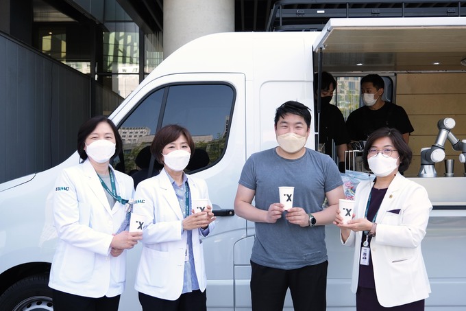 이날 두곳 병원의 커피트럭을 찾은 교직원과 환자 1000명은 로봇 바리스타가 제조한 커피와 간식을 받고 짧지만 달콤한 휴식을 취했다.
