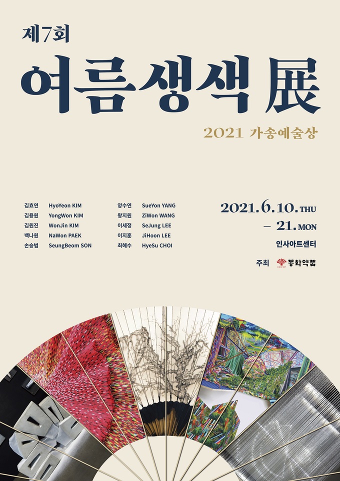 [세계비즈=김민지 기자] 동화약품은 우리나라 고유의 부채 접선(접는 부채)의 아름다움을 현대적으로 재해석한 작품을 선보이는 ‘제7회 여름생색’展을 개최한다고 밝혔다. 전시는 6월 10일부터 21일까지 인사아트센터에서 진행된다.