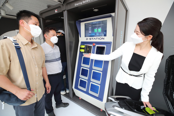 또한 관람객들은 EV이륜차 ‘배터리 교환 플랫폼(BSS, Battery Swapping System)’의 모바일 앱 기반 결제, 교환 등을 직접 체험할 수 있다. 아울러 배터리 상태 실시간 관제 등 전기차에 특화된 서비스를 제공하는 ‘전기차 특화 관제 시스템(EVSS, EV Specialized management System)'도 관람객이 이해하기 쉽도록 구성했다.