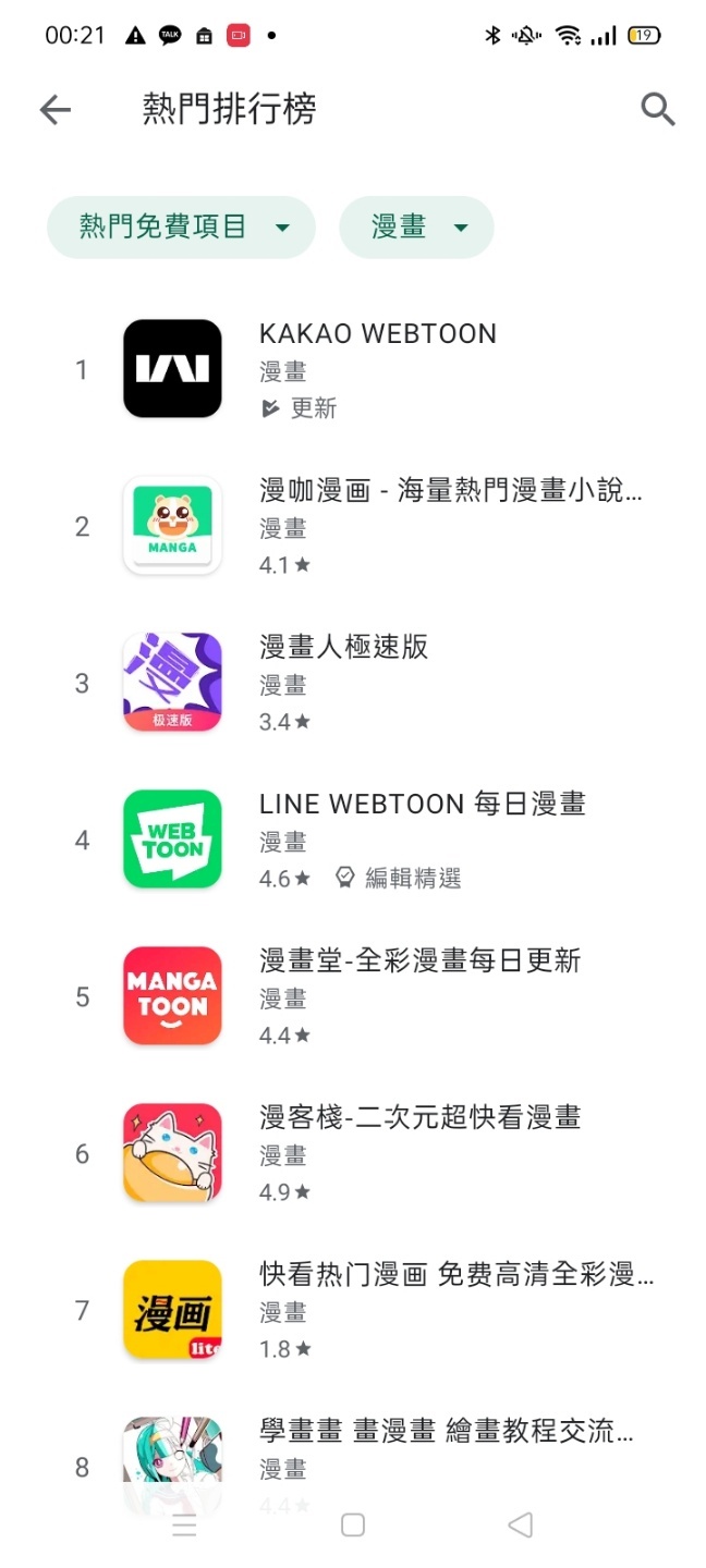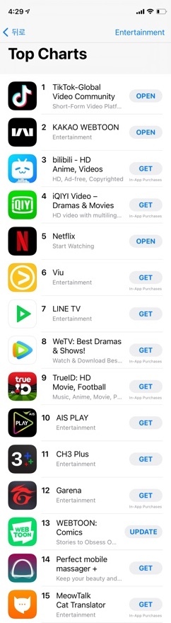 지난 7일에 론칭한 태국은 구글 플레이 스토어에서 ‘만화’ 분야 1위, 애플 앱스토어에서 ‘엔터테인먼트’ 분야 2위를 차지했다. 9일 론칭한 대만 역시 ‘만화’ 분야 1위와 함께 ‘엔터테인먼트’ 분야에서 넷플릭스 다음인 6위를 차지하며, 카카오웹툰의 ‘글로벌 성공 신호탄’을 쏘아 올렸다.