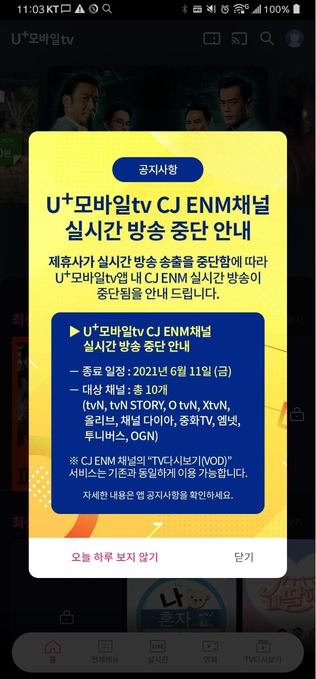 LG 유플러스의 온라인동영상서비스(OTT) U+모바일tv에서 12일 0시를 기점으로 ENM 채널 실시간 방송이 나오지 않고 있다. 이는 양사 간의 U+모바일tv 실시간 방송 콘텐츠 사용료 협상이 마감시한인 전날까지 합의점을 찾지 못하고 결렬됐기 때문이다.