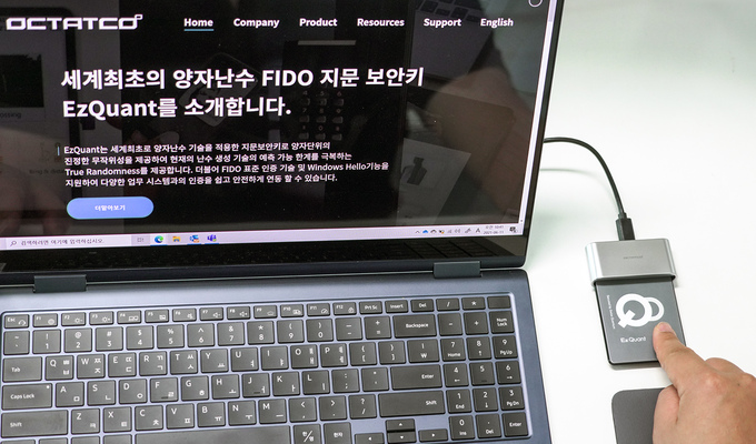 SK텔레콤과 아이디퀀티크(IDQ), 생체인증 벤처기업 옥타코는 양자난수생성기술이 적용된 지문인식 보안키 ‘이지퀀트(EzQuant)’를 세계 최초로 출시했다고 15일 밝혔다.