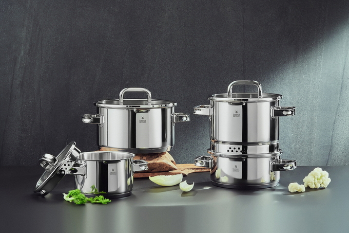 WMF 대표 제품인 ‘펑션4 어드밴스드‘는 WMF의 글로벌 베스트셀러 중 하나인 ‘펑션 4‘ 제품을 한국 소비자에 맞게 변형시켜 개발한 제품이다. 해당 제품의 뚜껑에 부착된 실리콘 재질을 전면 WMF 크로마간(WMF Cromargan®) 스테인리스 스틸 재질로 교체해, 독일 정통 브랜드의 장인정신과 기술력은 그대로 경험할 수 있도록 하면서 한국 소비자의 니즈에 맞게 보완한 점이 특징이다. 조리 시 뚜껑을 열지 않고도 수분을 4단계로 조절할 수 있는 기능을 가지고 있어, 섬세하게 수분을 조절해야 부드러운 식감과 깊은 풍미를 느낄 수 있는 한식 요리에 제격이다.