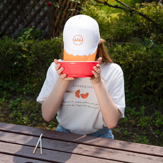 새로운 왕뚜껑 모자는 모자 앞 챙에 라면 국물을 연상케하는 디자인이 특징이다. 미스터스트릿과 숲몰은 국물이 스며드는 모습을 각자의 방식으로 해석해 재치 있게 표현했다. 2종 모두 왕뚜껑을 상징하는 왕관모양 로고를 볼캡 중앙에 수놓아 포인트를 줬다.