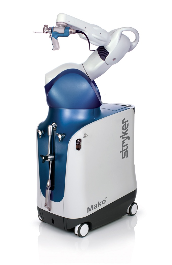 마코 로봇은 최첨단 인공관절 수술용 로봇 팔 보조 장비다. 퇴행성관절염 말기 환자의 무릎을 3D 입체 영상으로 구성해 정확한 수술 계획을 수립하고, 수술 중 실시간으로 환자의 무릎 정보를 확인해 세밀한 수술이 진행될 수 있도록 돕는다.