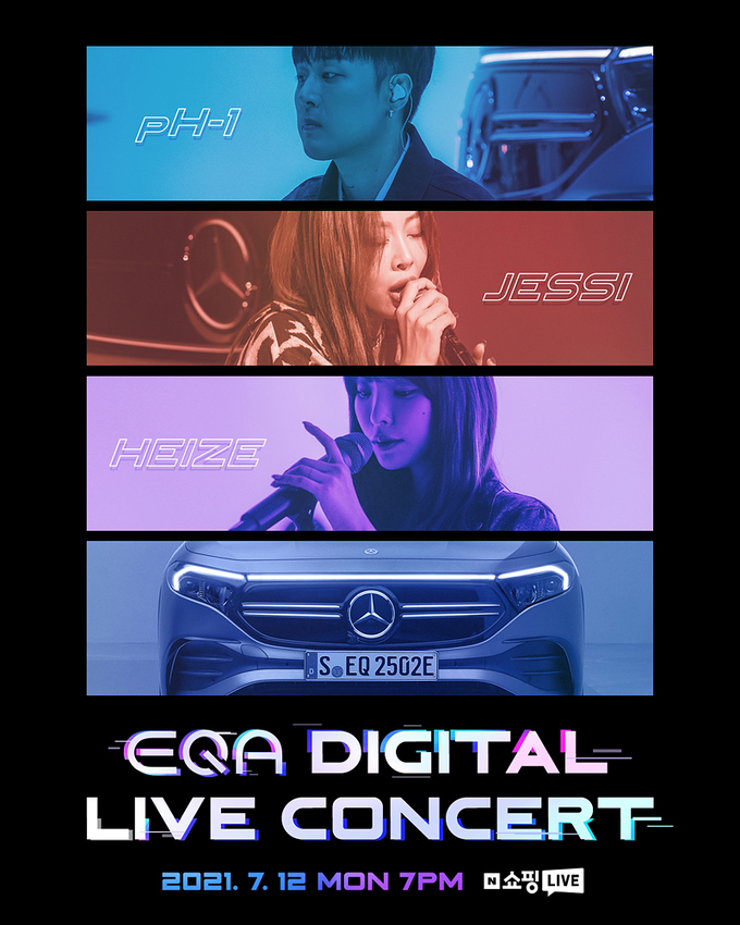 12일 국내 공식 출시되는 더 뉴 EQA와 함께 열리는 이번 디지털 라이브 콘서트는 약 60분 동안 진행되며, 네이버 쇼핑라이브를 통해 접속한 누구나 pH-1, 제시, 헤이즈와 같은 인기 아티스트의 라이브 공연과 함께 메르세데스-EQ의 럭셔리 전기 컴팩트 SUV 더 뉴 EQA를 온라인 생중계로 만날 수 있다. 또한, 메르세데스-벤츠 코리아는 라이브 콘서트 시청자들을 위해 더 뉴 EQA 시승 신청 기회와 더불어 다양한 경품 이벤트를 마련했다.