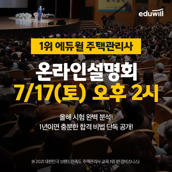 [세계비즈=박혜선 기자] 에듀윌(대표 박명규) 주택관리사는 오는 17일 오후 2시 ‘2022년 합격전략 설명회’를 온라인 생방송으로 실시한다고 14일 밝혔다.