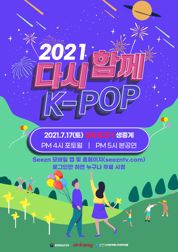 ‘2021 다시 함께, K-POP 콘서트’는 코로나19로 침체된 산업과 국민을 위로하고 희망의 메시지를 전달하며 대중음악 공연의 지속적인 활성화와 재기를 위한 콘서트다. 본래 오프라인 공연으로 계획됐으나 코로나19 확산에 따라 Seezn과 올레tv가 단독으로 비대면 공연을 준비하게 됐다.