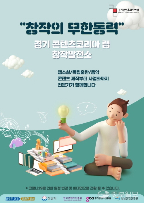 [세계비즈=박혜선 기자] 경기 콘텐츠 코리아 랩(경기 콘 랩)을 운영 중인 경기콘텐츠진흥원(경콘진)은 오는 25일까지 ‘2021 경기 콘텐츠코리아 랩 창작발전소’ 참가자를 모집한다고 23일 밝혔다.