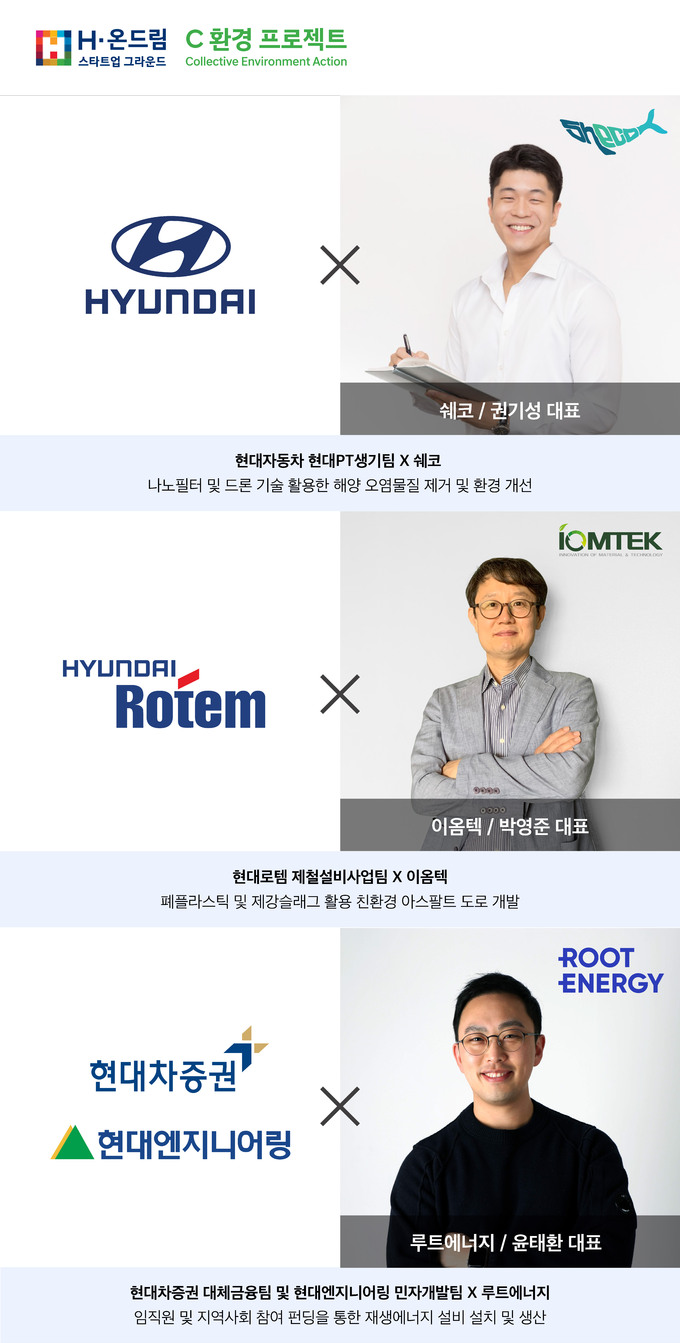 현대차그룹은 정몽구재단이 운영하는 ‘H-온드림 스타트업 그라운드’ 사업의 ‘H-온드림 C’ 프로그램을 지원한다. H-온드림 C는 사회적 문제를 해결하는 스타트업을 발굴·육성하는 H-온드림 스타트업 그라운드 사업의 환경 관련 세부 프로그램이다.
