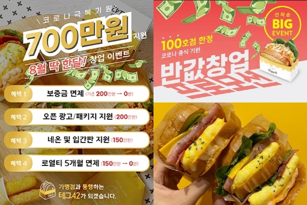 [세계비즈=박혜선 기자] 에그 토스트 창업 ‘테그42’가 선착순 반값창업 및 700만 원 지원 이벤트를 진행한다고 18일 밝혔다.