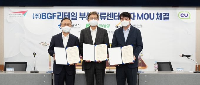 이날 업무협약식은 부산광역시청에서 진행됐으며 이건준 BGF리테일 대표와 박형준 부산광역시장, 송광행 부산·진해경제자유구역청 투자유치본부장 등이 참석했다.