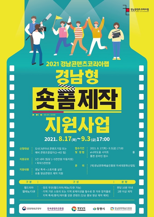 ‘경남형 숏폼 콘텐츠 제작지원사업’에 대한 자세한 내용은 경남문화예술진흥원과 경남콘텐츠코리아랩 홈페이지 내 공고에서 확인할 수 있다.