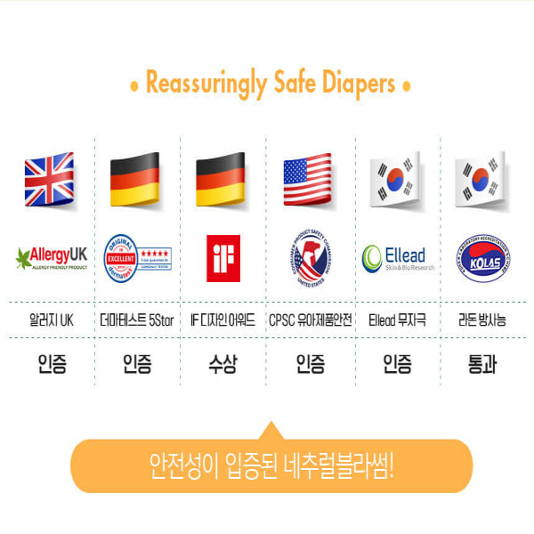 업체 측에 따르면 네추럴블라썸은 세계에서 우수성을 인정받은 프리미엄 자재를 사용하여 만든 기저귀로, 톨루엔, 벤젠 등 화학 성분을 배제하여 아기 피부의 자극을 최대한 줄였으며, 통기성 필름을 사용해 기저귀 발진을 최소화했다. 또한 국내 최초로 미국 아마존에 입점했다고 업체 측은 설명했다.