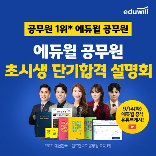 [세계비즈=박혜선 기자] 에듀윌(대표 박명규) 공무원이 오는 9월 14일 오후 8시에 초시 합격전략을 공개하는 ‘2022 공무원 초시생 단기합격 설명회’를 진행한다고 31일 밝혔다.