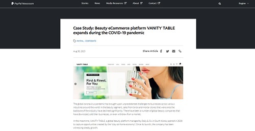 최근 페이팔 뉴스룸은 베니티 테이블의 성공 비결로 인스타그램, 트위터 등 SNS 채널을 통해 활발하게 고객과 소통하여 입점 브랜드와 제품에 대한 신뢰도를 제고시키는 것을 꼽았다고 업체 측은 밝혔다. 또한 각종 쿠폰, 멤버십과 같은 다양한 고객 혜택과 상품 추천, 처음 구매하는 고객을 위한 스타터 세트 등이 고객들에게 좋은 반응을 얻었다고 언급했다.