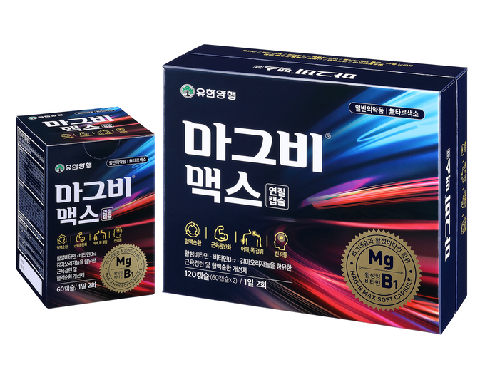‘마그비 맥스’는 마그네슘 시장의 오리지널 제품인 ‘마그비’ 시리즈의 신제품으로 마그네슘 함량을 높이고 신경비타민인 비타민 B1, B6, B12와 비타민 B2, B3, 비타민E, 감마오리자놀로 구성됐다.