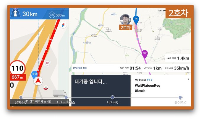 [세계비즈=권영준 기자] 카카오모빌리티가 9일 국토교통부 개최 “화물차 자율협력 군집주행 기술개발 최종 성과발표회”에 참여해 “V2X 기반 군집주행 서비스 플랫폼 개발" 연구 성과를 발표하고, 고속국도 영동선과 중부내륙선 약 80km 구간에서 국내 최초로 장거리 군집주행 시연에 나선다고 밝혔다.