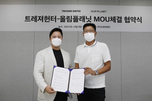 트레져헌터 본사에서 진행된 협약식에는 송재룡 트레져헌터 대표와 권재현 올림플래닛 대표 등 양사 관계자들이 참석했다.