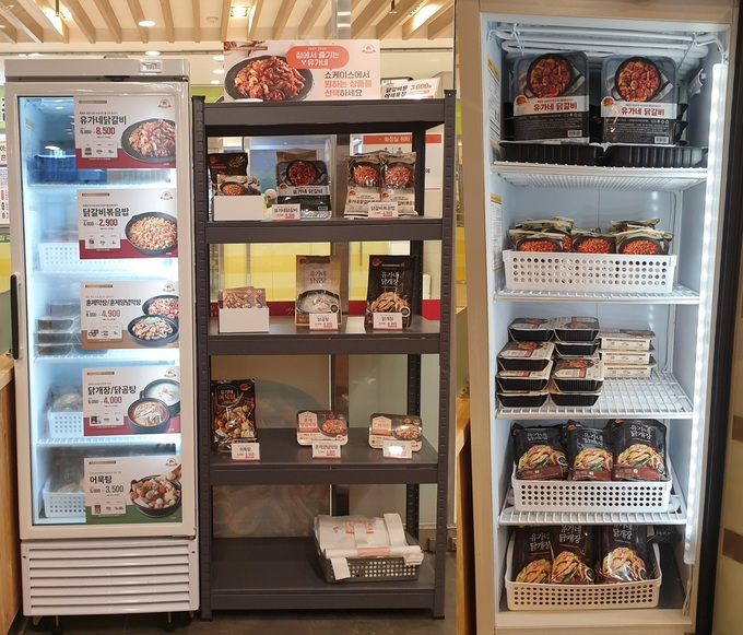유가네는 지난 8월, 평택소사벌점에 HMR 제품 전용 냉동고와 쇼케이스를 설치, 매장 방문 고객을 대상으로 제품 판매를 시작했다. 해당 매장에서는 닭갈비, 볶음밥, 안주류 등 7가지 종류의 HMR 제품을 매장에서 직접 보고 구매할 수 있다. 특히, 매장에서 식사한 고객 대상 최대 50% 할인 프로모션을 진행하며 식사 후 결제 시 구매가 늘고 있다.