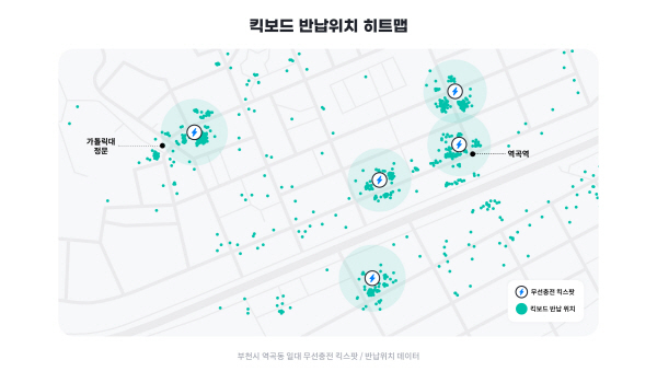 한편, 지난 7월 13일부터 개인형 이동장치의 주차공간이 마련될 수 있도록 도로교통법 시행령이 개정됨에 따라 유동인구가 많은 곳 등에 개인형 이동장치 주차장이 도입될 것으로 예상된다. 킥고잉은 이번 분석을 토대로 질서유지 효과와 친환경성까지 입증된 무선충전 킥스팟이 많은 곳에 적용될 수 있도록 부천시를 비롯한 타 지자체와의 협력을 지속할 예정이라고 밝혔다.
