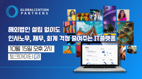 [세계비즈=박보라 기자] 글로벌 HR 전문기업 Globalization Partners가 오는 15일에 ‘위드코로나, 해외진출을 고민하고 있다면? 해외법인 설립 없이도 HR, 재무, 회계 걱정 줄여주는 IT솔루션’ 웨비나를 진행한다고 7일 밝혔다.