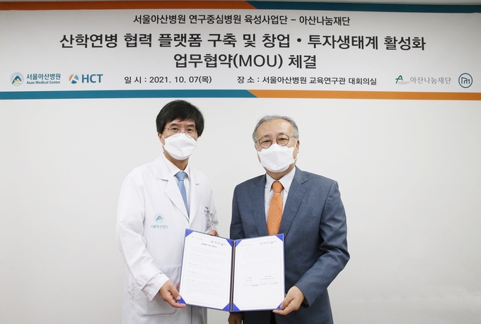 지난 7일 서울 송파구 서울아산병원에서 열린 업무협약식에는 한정화 아산나눔재단 이사장, 김종재 서울아산병원 아산생명과학연구원장 등 관계자 10여 명이 참석했다. 양 기관은 네트워크를 강화하고 아산나눔재단의 청년 창업 지원 사업과 서울아산병원 육성R&D 사업의 공동 발전에 힘을 모으기로 협의했다.