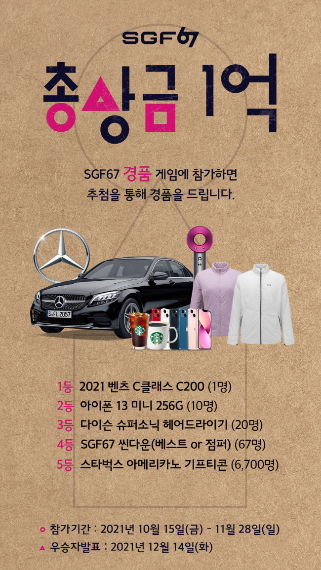 이벤트 페이지에 접속하는 모든 사용자들의 참여가 가능하며, SGF67의 기존 고객 및 신규 고객 모두 응모가 가능하다.