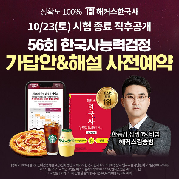 이에 해커스한국사는 한능검 종료 직후인 오전 11시 40분부터 가답안 공개 및 라이브 해설을 진행할 예정이라고 20일 밝혔다.