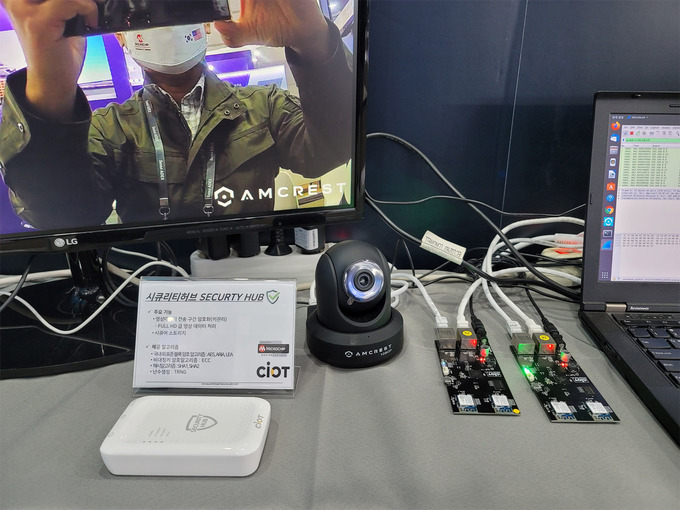 시옷은 이번 서울 ADEX에서 세계적인 반도체 제조업체인 마이크로칩 테크놀로지(Microchip Technology)와 함께 하드웨어 경량 암호모듈 기반 솔루션 제품 ‘시큐리티 허브(Security Hub)’를 선보였다. 초고속 경량 암호모듈이 탑재된 시큐리티 허브는 영상보안 시스템 내 설치돼 영상 데이터를 실시간으로 암∙복호화해 보안성을 높이는 제품이다. KCMVP검증필 암호모듈이 탑재돼 국내외 모두 통용 가능한 국내외 표준 알고리즘을 제공하며, 초고화질 영상데이터를 지연없이 암∙복호화해 시연 가능한 것이 특징이다.