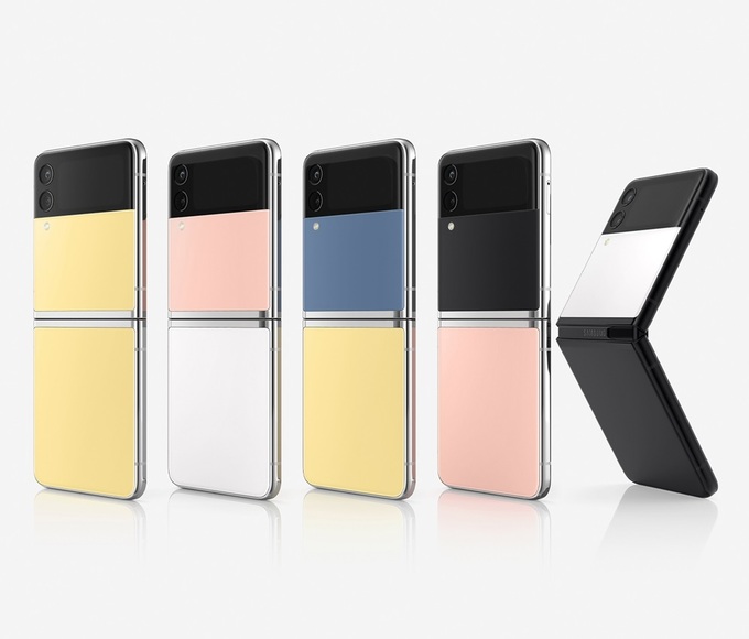‘갤럭시Z 플립3 비스포크 에디션’은 프레임(힌지 포함) 색상 ▲블랙 ▲실버 등 2종과 전·후면 색상 ▲블루 ▲옐로우 ▲핑크 ▲화이트 ▲블랙 등 5가지를 더해 총 49가지 색상 조합이 가능하도록 했다.