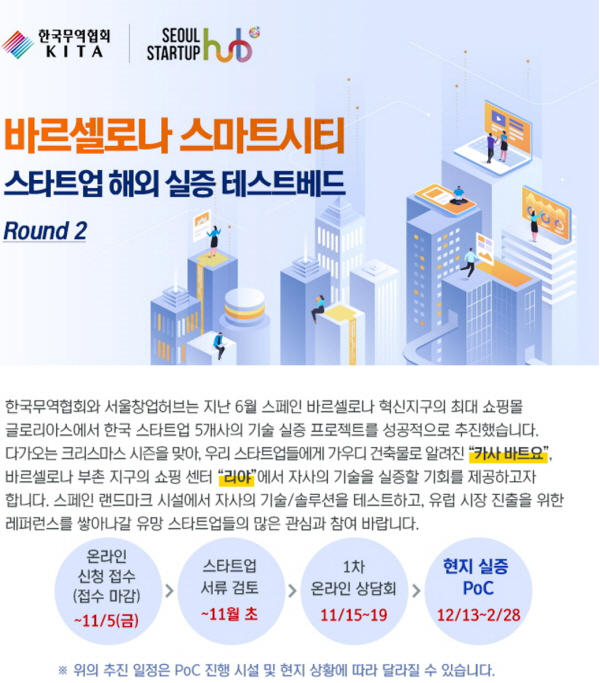 서울창업허브와 한국무역협회는 스페인 해외 실증 테스트베드(PoC)를 위한 업무협약을 체결하고, 스페인의 건축가 안토니 가우디의(Antoni Gaudí) 건축물 ‘카사 바트요(Casa Batlló)’, 바르셀로나 사리아 지역 내 유명 쇼핑센터 ‘리야(L'illa)’등 바르셀로나의 유명 명소를 우리 스타트업의 글로벌 스케일업 무대로 삼아 사업을 추진해 왔다.