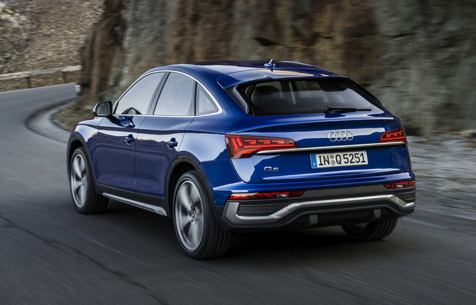 깔끔하게 연속적으로 이어지는 우아한 숄더 라인과 기울어진 리어 윈도우, 높게 장착된 리어범퍼 등 스포트백 특유의 우아하면서도 강인한 디자인을 완성한다. 또한, 팔각형 싱글프레임과 큰 측면 공기 흡입구, 크롬 윈도우 몰딩, 파노라믹 선루프 등을 기본으로 탑재해 견고하면서도 안정적인 느낌을 선사함과 동시에, 아우디 Q 모델 특유의 역동성과 강렬한 존재감을 발산한다.