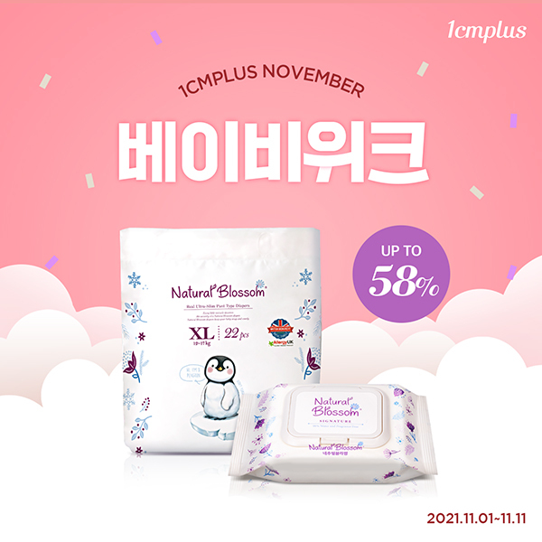 업체 측에 따르면 이번 베이비위크는 네추럴블라썸과 비건 물티슈 스페셜 SET 한정 판매뿐만 아니라 샤워기, 세제 등 육아용품을 최대 58% 할인에 회원 11% 추가 할인 혜택을 제공한다.