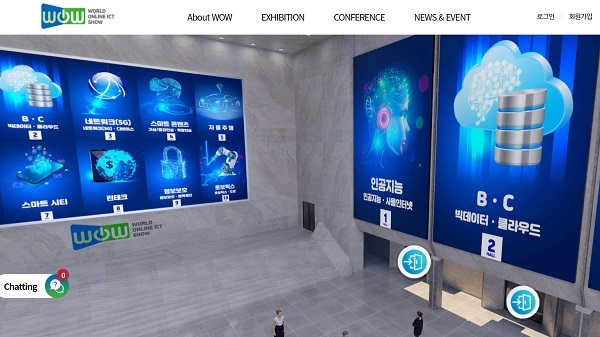 ICTWOW 전시관은 가상현실(VR)을 적용한 기업 전시부스, 강연과 회의를 위한 컨퍼런스 홀, 국내외 ICT 행사소개 메뉴 등으로 구성돼 24시간 상시 운영되고 있다.