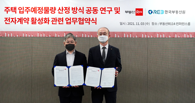 [박정환 기자] 부동산R114는 지난 3일 경기도 판교 부동산R114 사옥에서 한국부동산원과 ‘정확한 입주예정물량 정보 공개를 위한 공공·민간 협의체 구성 업무협약’을 체결했다고 5일 밝혔다.