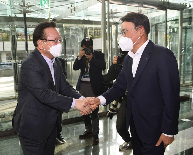 김부겸 국무총리와 최정우 포스코그룹 회장은 10일 서울 강남구 포스코센터에서 간담회를 갖고 이 같은 내용의 ‘청년희망ON’ 협약을 맺었다.