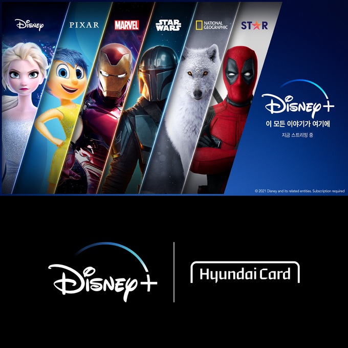 [세계비즈=유은정 기자] 현대카드는 글로벌 OTT 디즈니+(Disney+)의 공식 마케팅 파트너로서 특별 프로모션을 진행한다고 15일 밝혔다. 국내 카드사 중 디즈니+의 공식 마케팅 파트너는 현대카드가 최초다.
