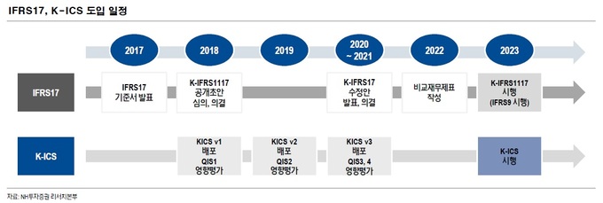 즉, 그동안 보험사들이 원가 평가로 보험 계약을 맺은 시점을 기준으로 보험부채를 계산했다면 2023년부터는 시가 평가로 결산기마다 실제 위험률과 시장금리를 반영해 보험부채를 계산해야 한다. 회계제도 변경에 따라 금융당국의 보험사 감독 기준도 현재의 지급여력제도(RBC)에서 신지급여력제도(K-ICS)로 변경될 예정이다.