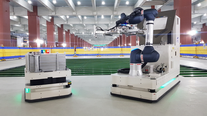 플로어 로봇은 현재 아산 디스플레이 현장에 도입해 운영 중이며, 11월 말 평택 반도체 현장에서도 활용할 계획이다.